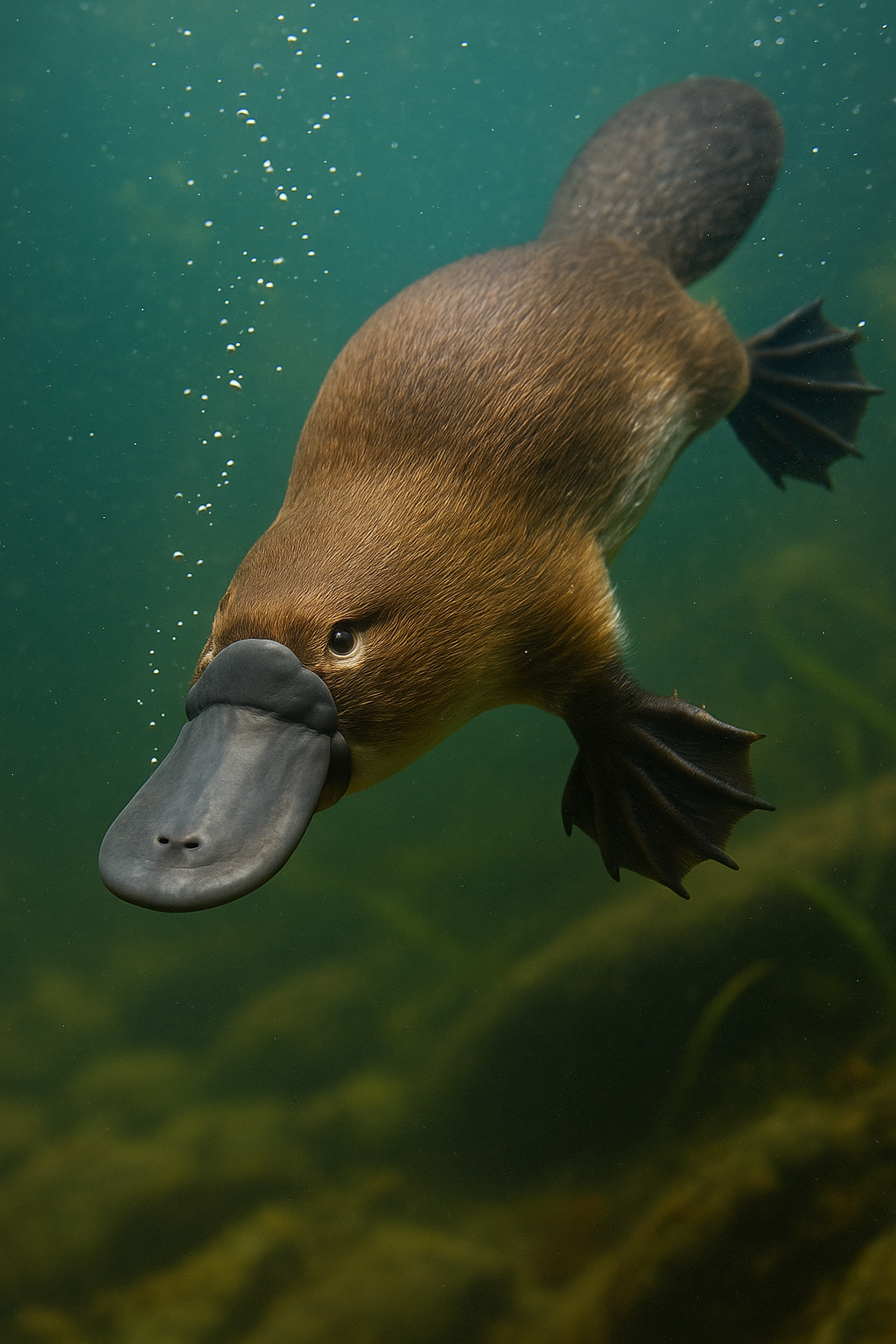 그때 오리너구리는 물속으로 몸을 던진다.